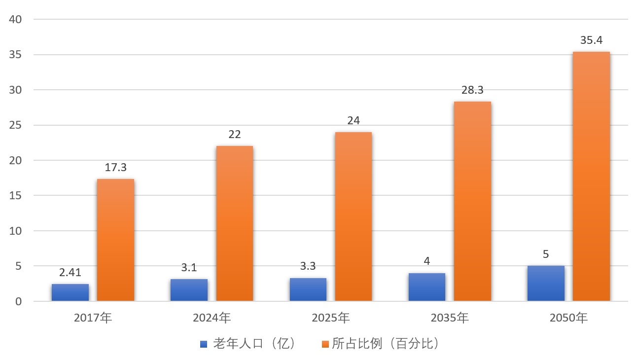 我國(guó)確立了“以居家為基礎(chǔ)、社區(qū)為依托、機(jī)構(gòu)為支撐”的養(yǎng)老產(chǎn)業(yè)框架和9073養(yǎng)老格局,90%在家中養(yǎng)老(居家養(yǎng)老);2026年2月28日,國(guó)家統(tǒng)計(jì)局發(fā)布,截至2025年底,我國(guó)60歲及以上老年人口有3.23億人,占總?cè)丝?3%,其中,65歲及以上人口超2.23億人,占15.9%,在2050年前后達(dá)到頂峰,約占總?cè)丝诘?/3。那時(shí),中國(guó)將有4.8億、甚至接近5億老年人,是世界上老年人口最多的國(guó)家。養(yǎng)老服務(wù)業(yè)目前已達(dá)10萬(wàn)億市場(chǎng)規(guī)模。