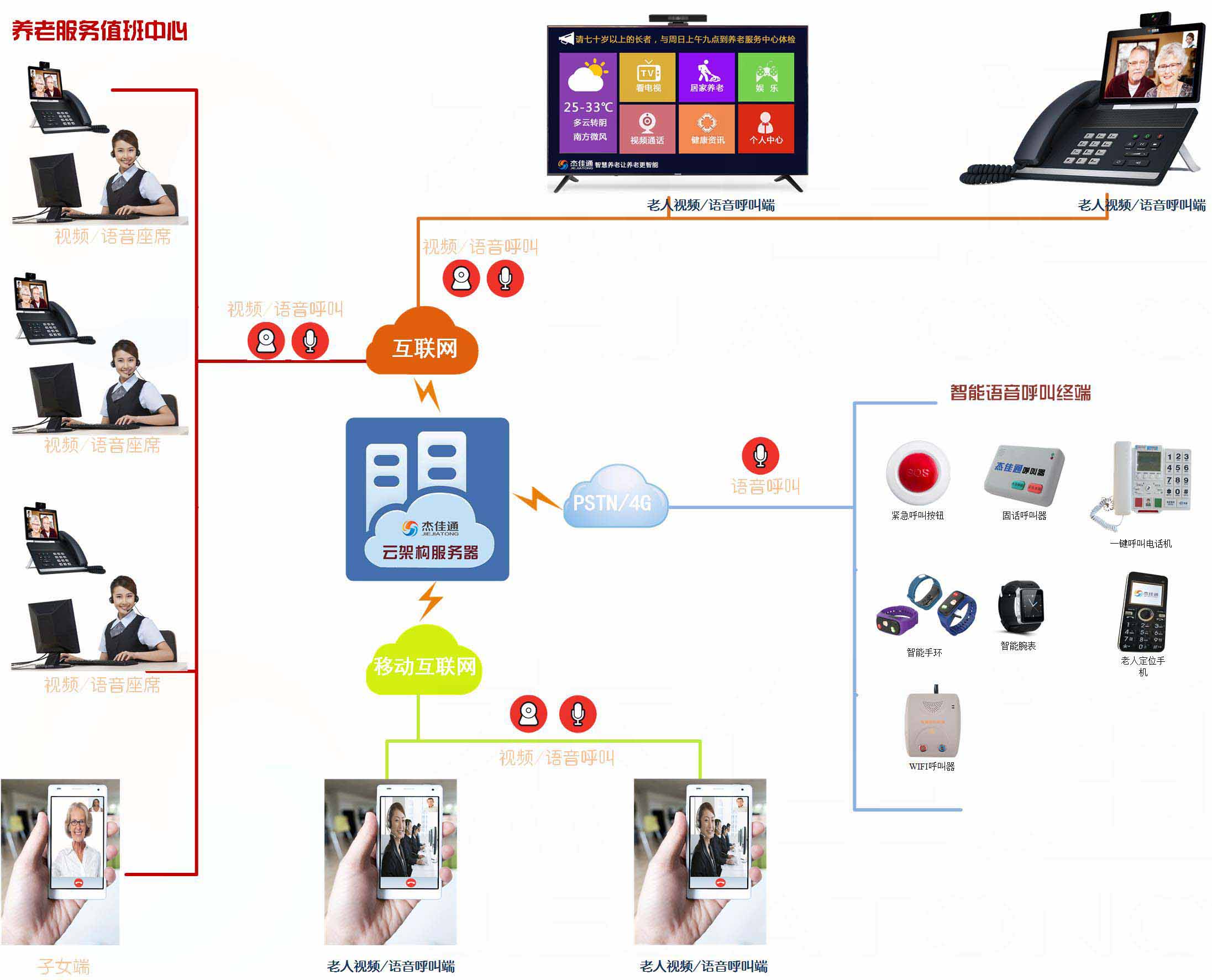 杰佳通智慧健康養(yǎng)老平臺(tái)應(yīng)用于居家養(yǎng)老、機(jī)構(gòu)養(yǎng)老、社區(qū)養(yǎng)老、醫(yī)養(yǎng)結(jié)合、地產(chǎn)養(yǎng)老、旅居養(yǎng)老和政府監(jiān)管養(yǎng)老,已有幾千家養(yǎng)老運(yùn)營(yíng)單位在使用。