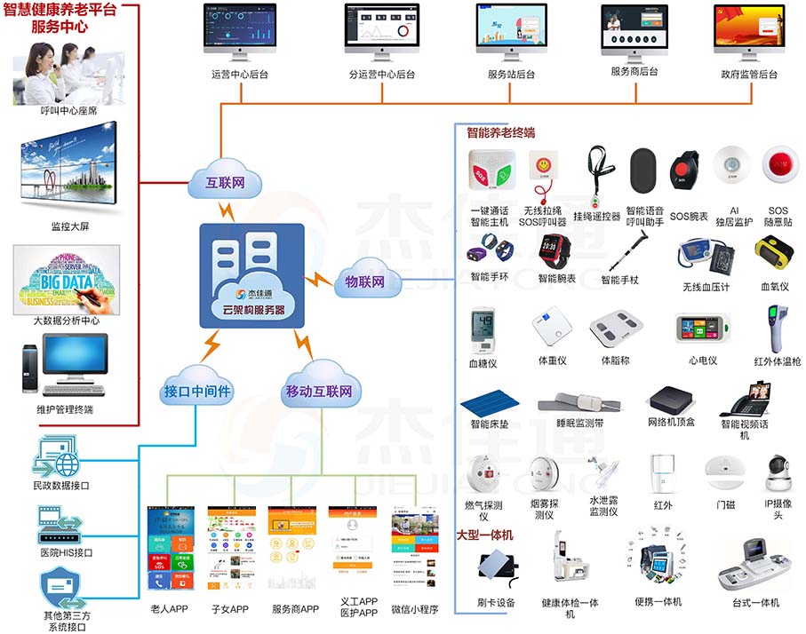 杰佳通2005年開始研發養老平臺,杰佳通智慧養老平臺(J3-HBCSP)的居家養老系統平臺方案經過近21年的完善,已經應用于幾百家養老運營公司,平臺隨著市場需求不定期升級,只有專注于養老平臺研發的企業才能做到快速響應養老需求的變化。